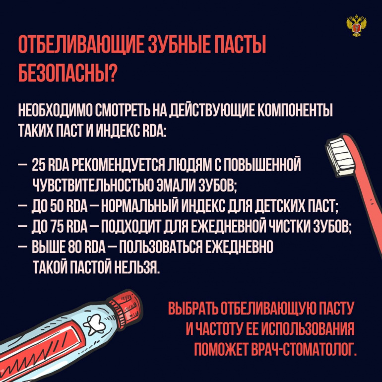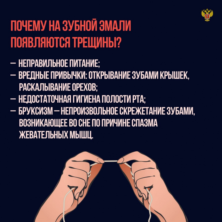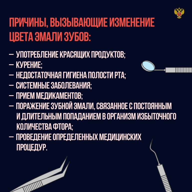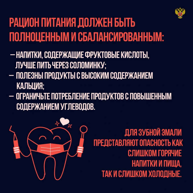 Почему зубы темнеют и трескаются? Какие отбеливающие пасты безопасны? Какой рацион позволит как можно дольше сохранять зубы здоровыми? Ответы — в карточках Минздрава.