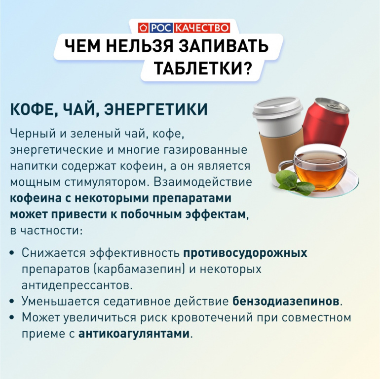 Лучше всего запивать таблетки обычной водой, но горький вкус препаратов так и тянет замаскировать приятным напитком. Можно ли запивать лекарства кофе, травяным чаем или соком, рассказали в Роскачестве.