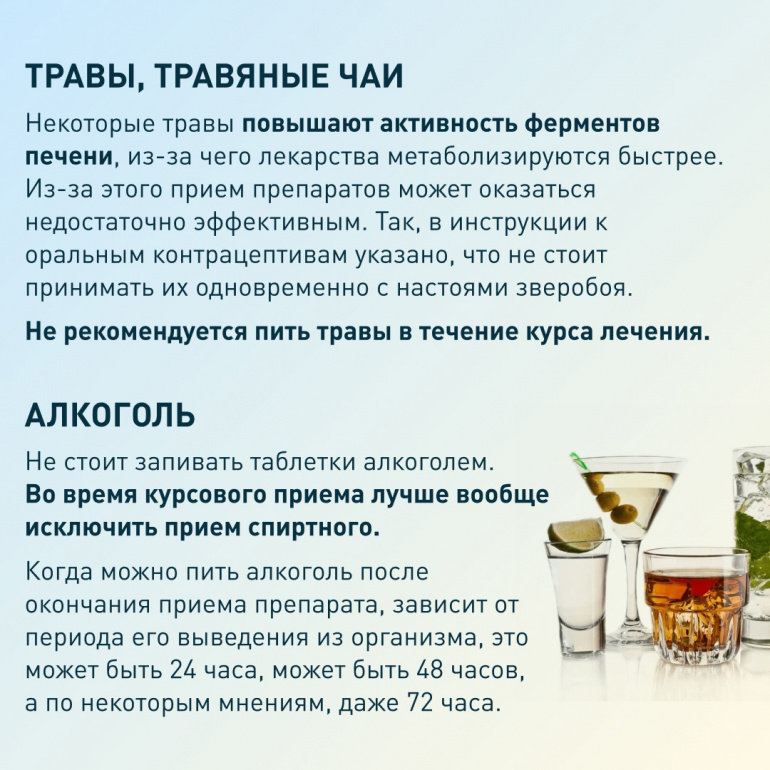 От травяных напитков, как и от спиртного, рекомендовано отказаться во время лечения полностью.