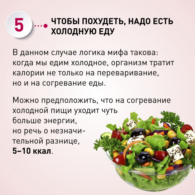 Авторы мифа рассуждали, что организм потратит энергию на нагревание еды. Если это и так, то расход энергии будет абсолютно незаметен. А вот блюдо вы испортите.