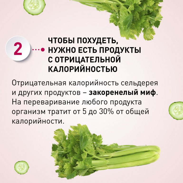 Отрицательная калорийность — миф. Продукты могут быть низкокалорийными, но не более того.