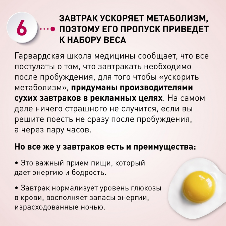 6. Завтрак ускоряет метаболизм, так что если не завтракать — потолстеешь