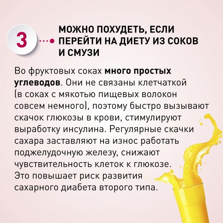 Нет, не стоит. Мало того, что это не поможет с похудением, ведь весь сахар останется в соке. Это ещё и лишит фрукты и ягоды полезной клетчатки. Если злоупотреблять соком, скачки инсулина способны спровоцировать развитие диабета.