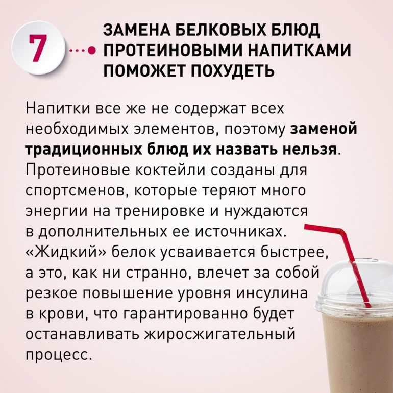7. Чтобы похудеть, стоит заменять белковые блюда протеиновыми напитками