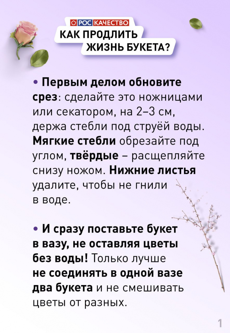 Порой принесённый домой букет осыпается буквально на следующий день. Но если воспользоваться советами Роскачества, то можно продлить дома жизнь срезанных цветов.