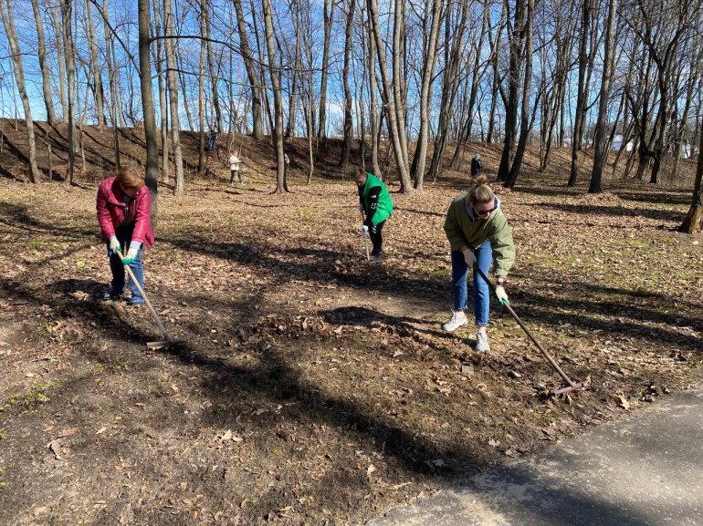 Наибольший фронт работ пришёлся на уборку прошлогодней листвы и опавших веток. Весь собранный мусор подготовили к утилизации.