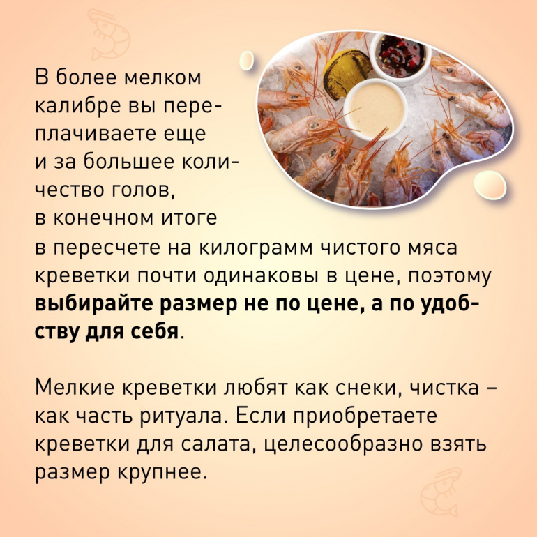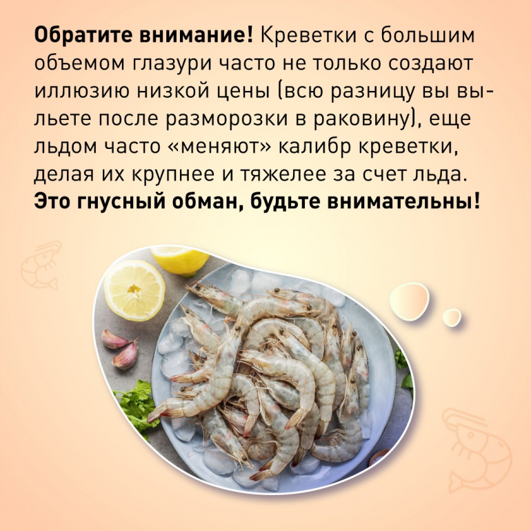 Ещё один совет Светланы Кротковой — никогда не брать креветки со льда. Объяснение — на картинке.