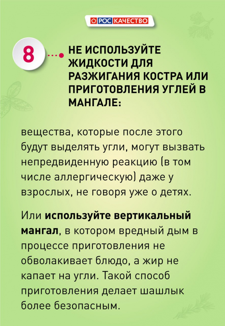 И ни в коем случае не поливайте угли и дрова жидкостями для разжигания костров — это навредит организму.