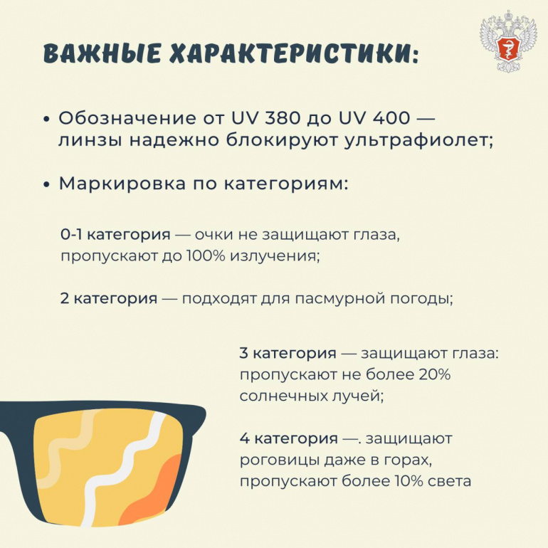 С наступлением лета долгое нахождение на солнце становится опасным для здоровья в целом и особенно для зрения, поскольку неблагоприятное воздействие ультрафиолетовых лучей приводит к развитию серьёзных патологий. В этом случае солнцезащитные очки — ружанам в помощь. Но как выбрать качественный летний аксессуар, чтобы не навредить глазам? Об этом рассказала врач-офтальмолог Министерства здравоохранения.