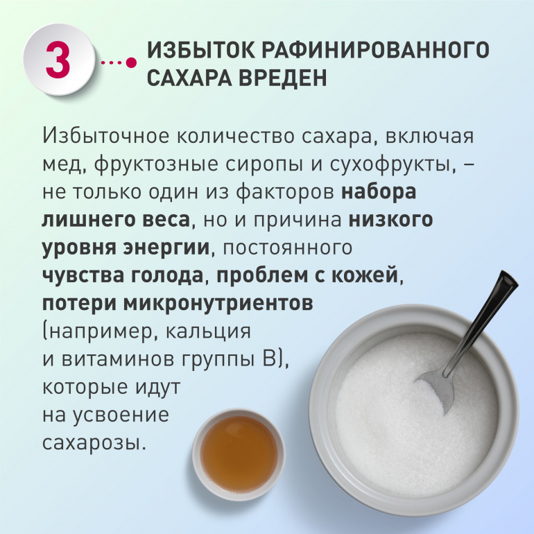 Сахар — идеальный источник энергии, и если нужно быстро подкрепить силы, нет ничего лучше пары долек шоколада. А вот поедать сладости помногу каждый день — верный путь к набору веса.