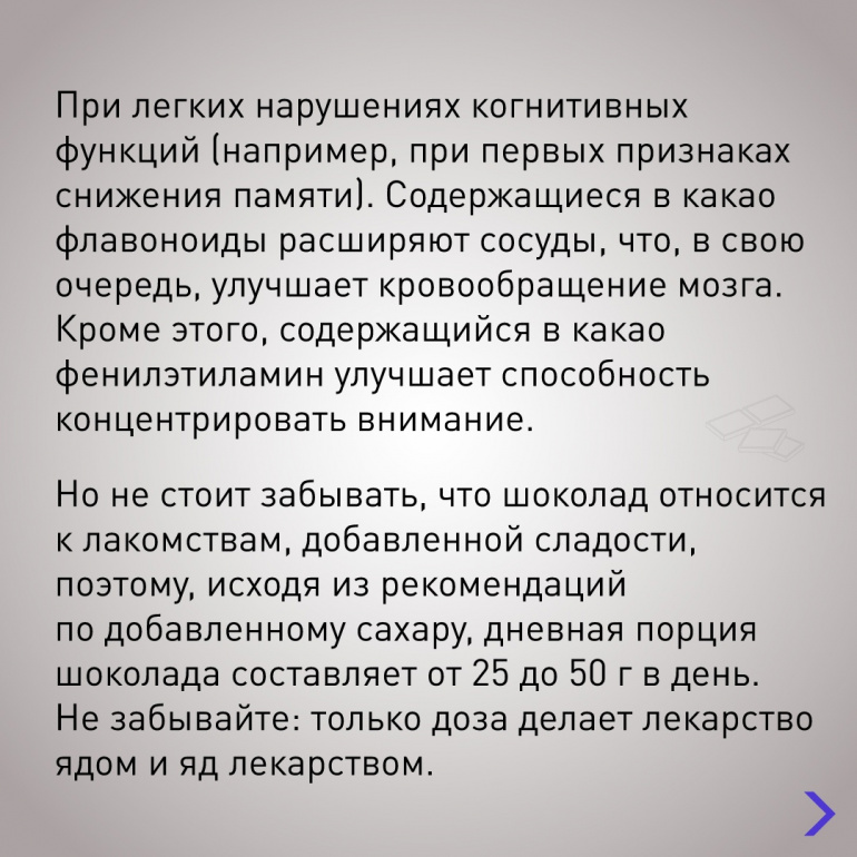 При этом рекомендуемая диетологами суточная норма горького шоколада в день — не более 30 г. Если вы хотите похудеть, превышать эту дозу не стоит.