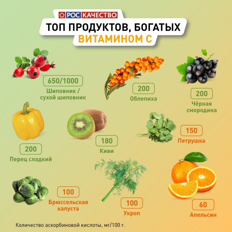 Доступные продукты, богатые витамином С, перечислили в Роскачестве