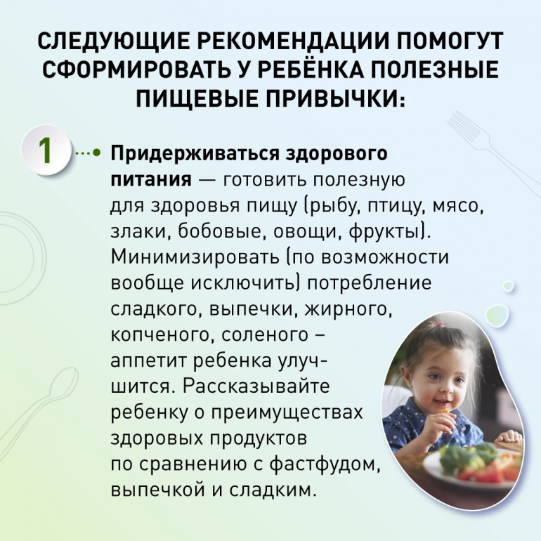 База пищевого поведения закладывается в детстве. И если ещё маленькими мы не научились распознавать голод и сытость и привыкли поедать фастфуд перед телевизором, избавиться от вредных пищевых привычек будет всё сложнее и сложнее. Как не допустить этого, смотрите на карточках, которые подготовили специалисты Роскачества при участии нутрициолога Алёны Коготковой.