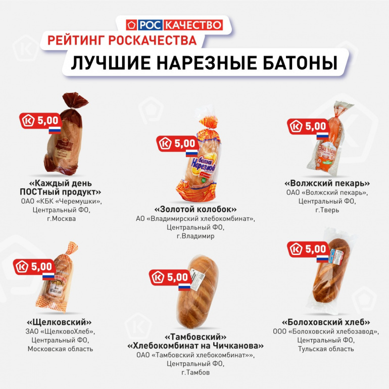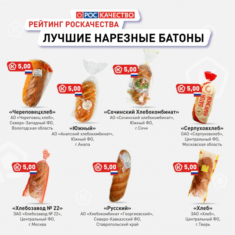 Очередной рейтинг Роскачества посвящён нарезным батонам. Во многих семьях ни один завтрак не обходится без этого сытного и вкусного продукта. В подборку лучших вошли два бренда батонов, которые выпекают в Московской области.