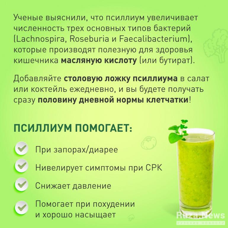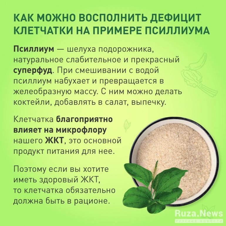 Если съедать каждый день почти полкило растительности не получается, можно обогатить рацион псиллиумом. Это шелуха подорожника, которую добавляют в еду.