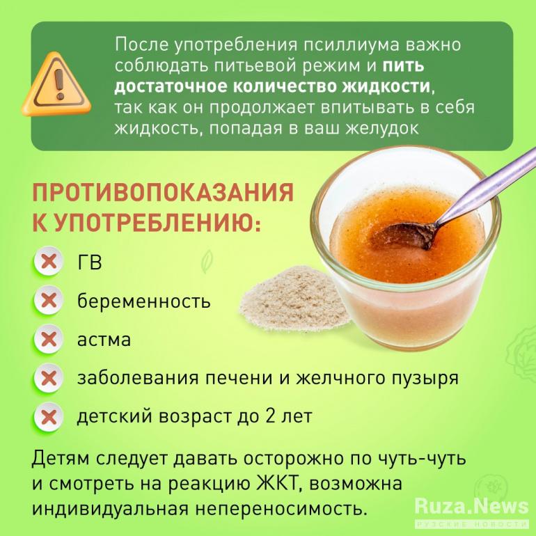 Если вы употребляете псиллиум, важно пить достаточное количество жидкости, а также учитывать противопоказания.