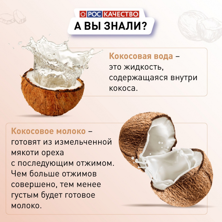 О разнице между кокосовой водой и молоком, а также их пользе рассказали в Роскачестве