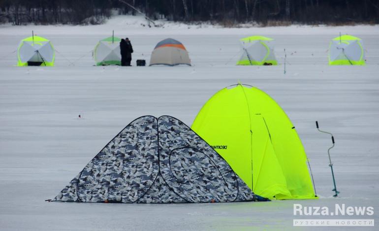 Покрытые толстым слоем льда водоёмы привлекли любителей зимней рыбалки
