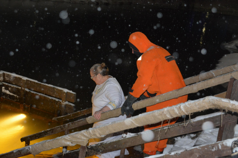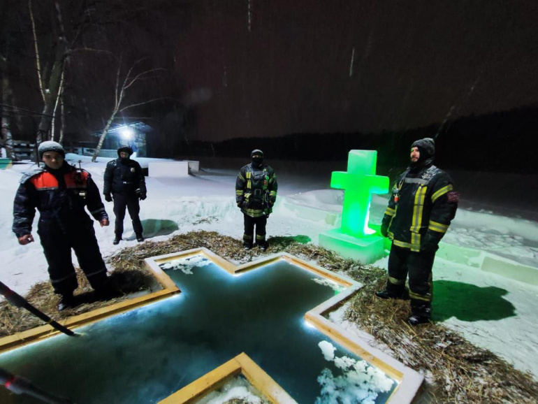 На подмосковных купелях в Крещенскую ночь дежурили 347 спасателей. Места для омовения оборудовали сходнями, рядом с купелями установили осветительные мачты и тёплые раздевалки, где можно было переодеться.