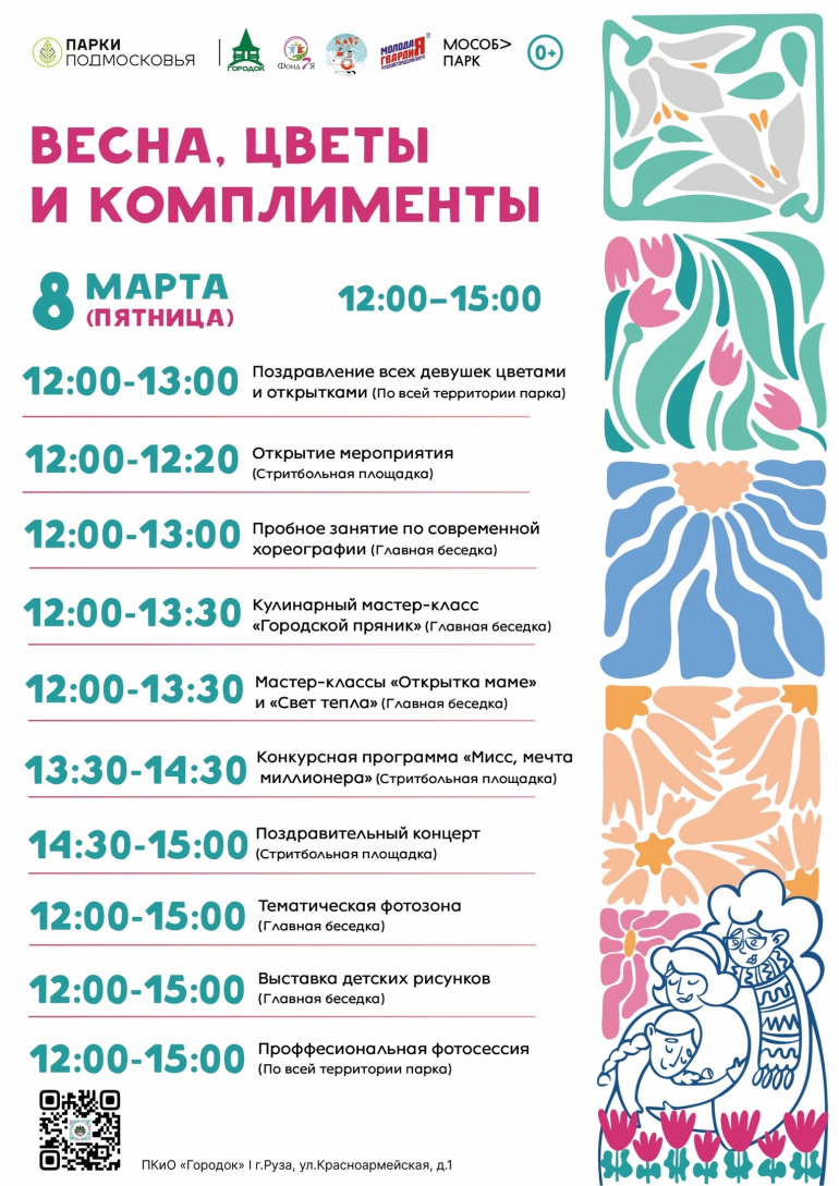 Уже на этой неделе всей прекрасной половине страны будут дарить цветы и подарки в честь Международного женского дня. А в парке «Городок» организуют общеобластное мероприятие «Весна, цветы и комплименты». Афишу события опубликовали в администрации Рузского городского округа.