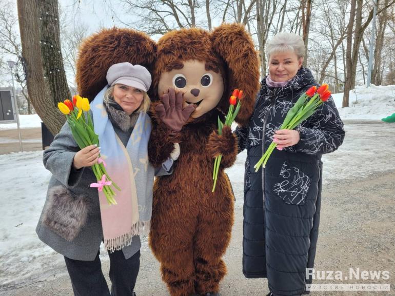 По всей территории парка гуляли ростовые куклы Чебурашка и крокодил Гена. Они весело и задорно поздравляли всех девушек с праздником и дарили цветы и открытки. Профессиональный фотограф не упускал возможности запечатлеть эти радостные моменты.