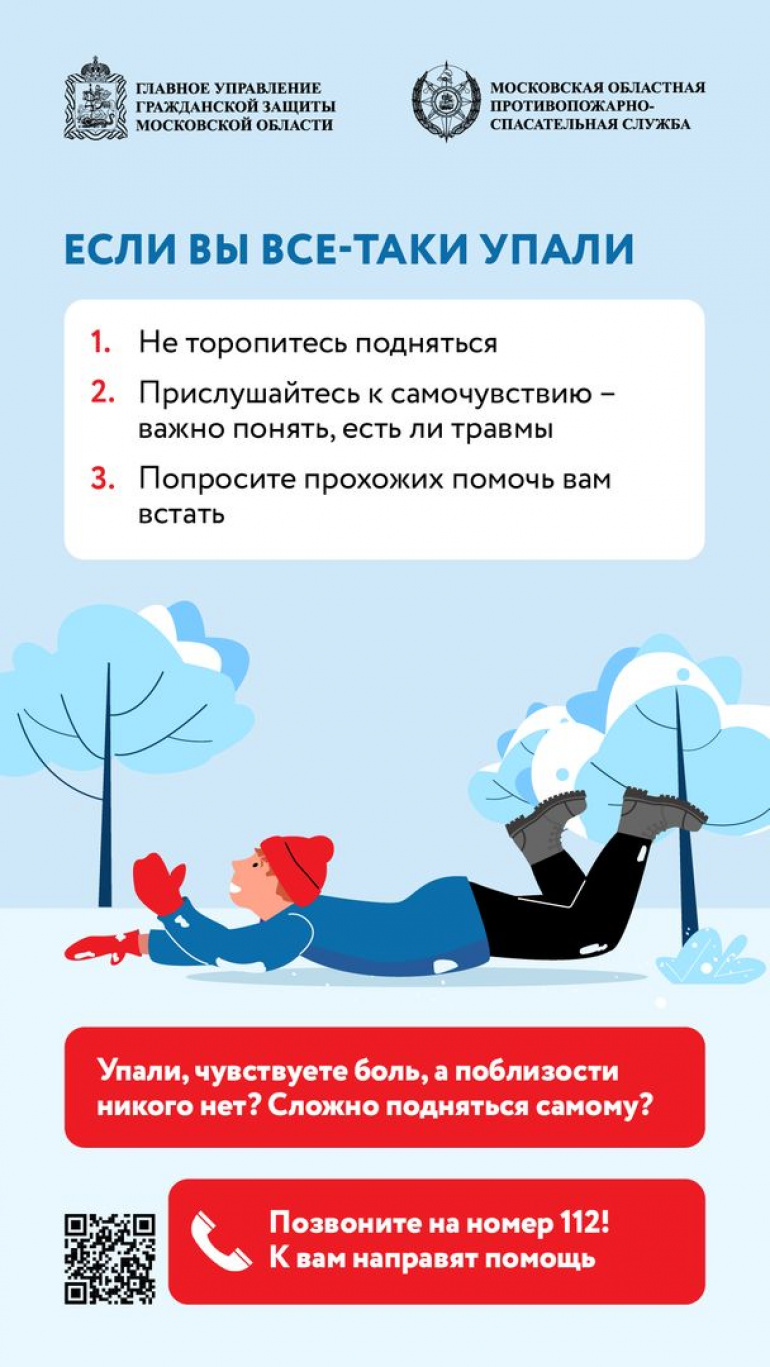 Упав, не торопитесь подняться, оцените своё состояние и попросите помощи у прохожих. Если же рядом никого нет, то позвоните в службу спасения.