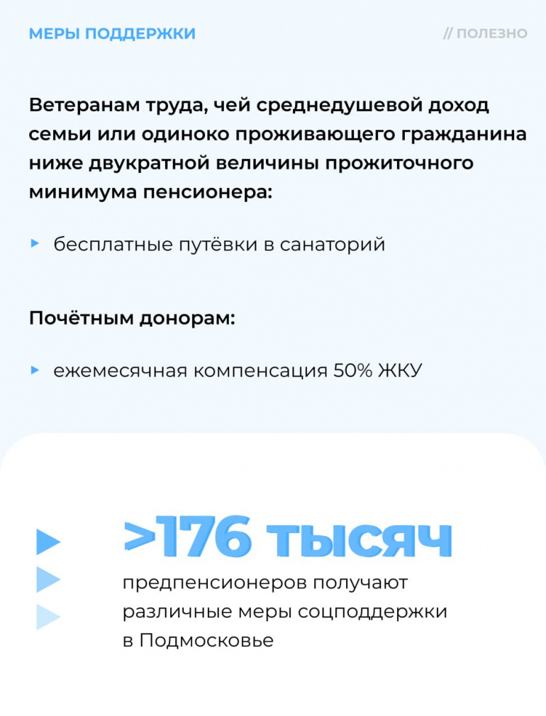 Более 176 тысяч предпенсионеров Подмосковья получают меры соцподдержки
