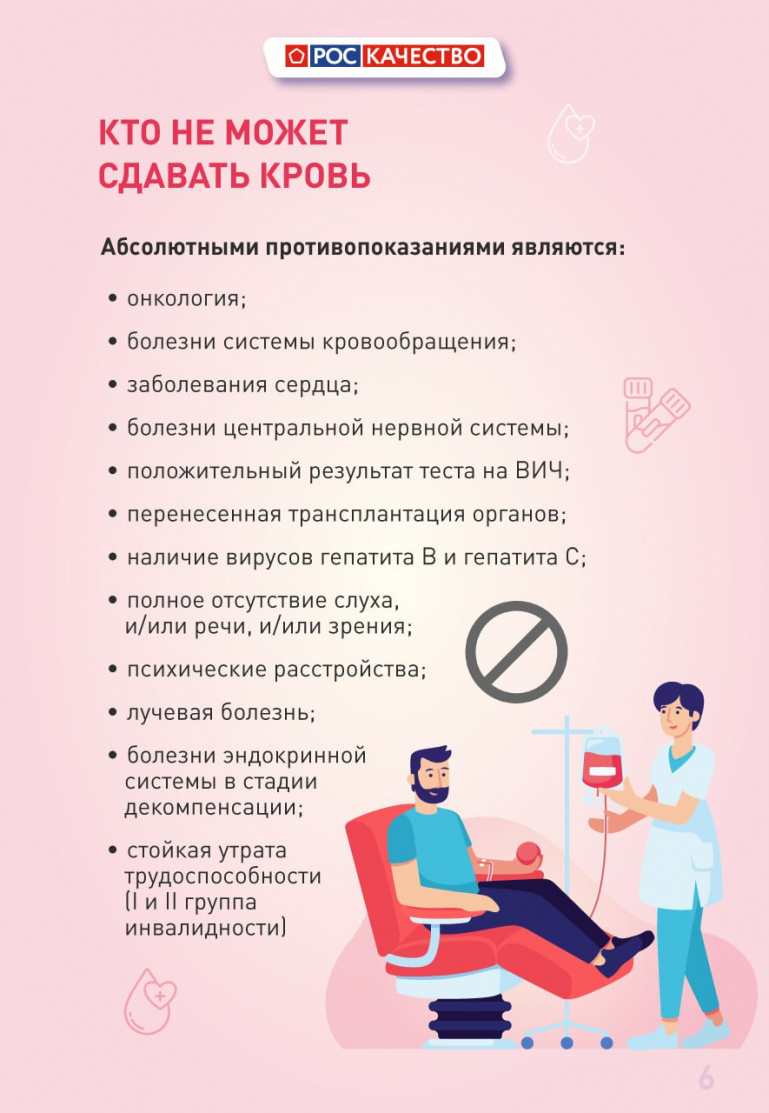Процедура сдачи крови запрещена тем, кто страдает лучевыми болезнями, онкологическими заболеваниями, болезнями системы кровообращения, сердца, центральной нервной системы, эндокринной системы в стадии декомпенсации, психическими расстройствами и так далее.