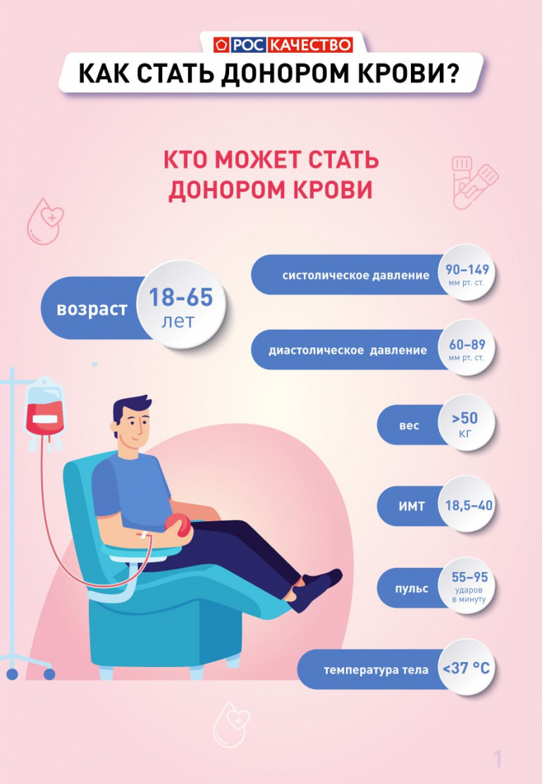 Донором крови может стать человек в возрасте от 18 до 65 лет.