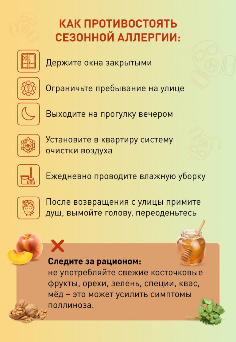 — Чтобы обезопасить себя от сезонной аллергии, стоит держать окна закрытыми, установить систему очистки воздуха, ежедневно проводить влажную уборку, стараться гулять только вечером, а по возвращению с прогулки принимать душ, — поделились советами с партнёром нашего издания, сайтом Pchela.news эксперты Роскачества.