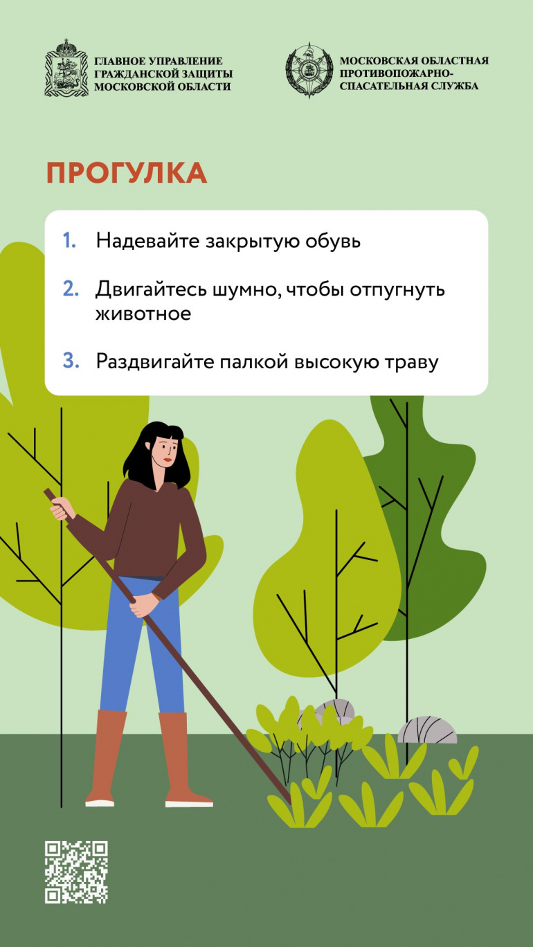 На прогулку лучше надевать закрытую обувь. Во время променада стоит двигаться шумно, чтобы отпугнуть животное, а также раздвигать палкой высокую траву.