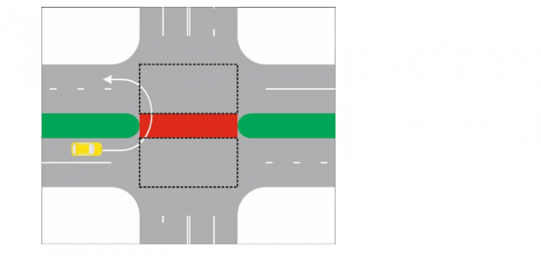 И как уже было сказано, по ГОСТ Р 52289–2019 «границы пересечения проезжих частей» проходят иначе.