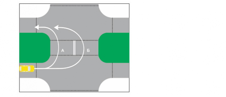 Разворот по малому радиусу по траектории, А превращается в два поворота налево. И упоминание п.8.6 ПДД становится уместным, о чем и говорится в постановлениях Верховного суда № 5-АД16-256 от 15.12.2016, № 5-АД16-10 от 25.03.2016 и № 41-АД18-1 от 01.02.2018. Все перечисленные постановления к развороту, показанному на рисунке 1 или 3, никакого отношения не имеют.