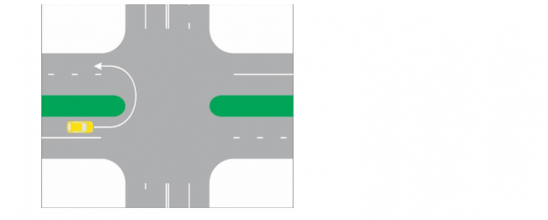 А теперь вспомним, что указатели поворота выключаются автоматически, когда автомобиль после выполнения маневра начинает двигаться по прямой. И если при развороте на перекрёстке по малому радиусу рычаг включения указателей поворота отщёлкнулся, то на данном перекрёстке лучше так не разворачиваться, и центр перекрёстка лучше объехать.