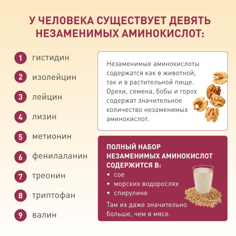 Незаменимые аминокислоты организм человека не может синтезировать сам. Поэтому их нужно получать из продуктов.