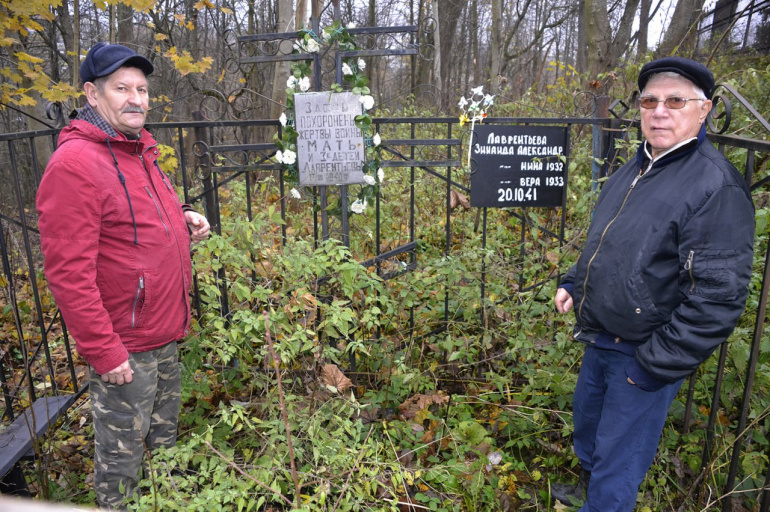 На днях члены Совета Эдуард Байдаков и Александр Храмков посетили могилу Лаврентьевых — матери и её троих детей, которые погибли во время падения фашистской бомбы на дом мирных жителей. Могила находится в труднодоступном месте на улице Рабочей, на склоне оврага. Табличку с фамилиями уже изготовили и установили. Однако в этом месте сейчас лежит огромное поваленное дерево — решается вопрос о расчистке территории для того, чтобы открыть к могилке свободный доступ.