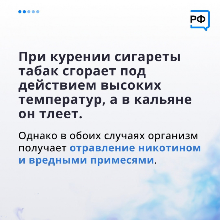 При курении сигареты табак сгорает под действием высоких температур, а в кальяне он тлеет. Однако в обоих случаях организм отравляется вредными примесями и никотином.