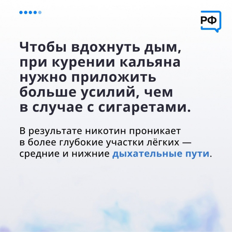 За счёт того, что при курении кальяна нужно приложить больше усилий, никотин проникает в более глубокие участки лёгких.
