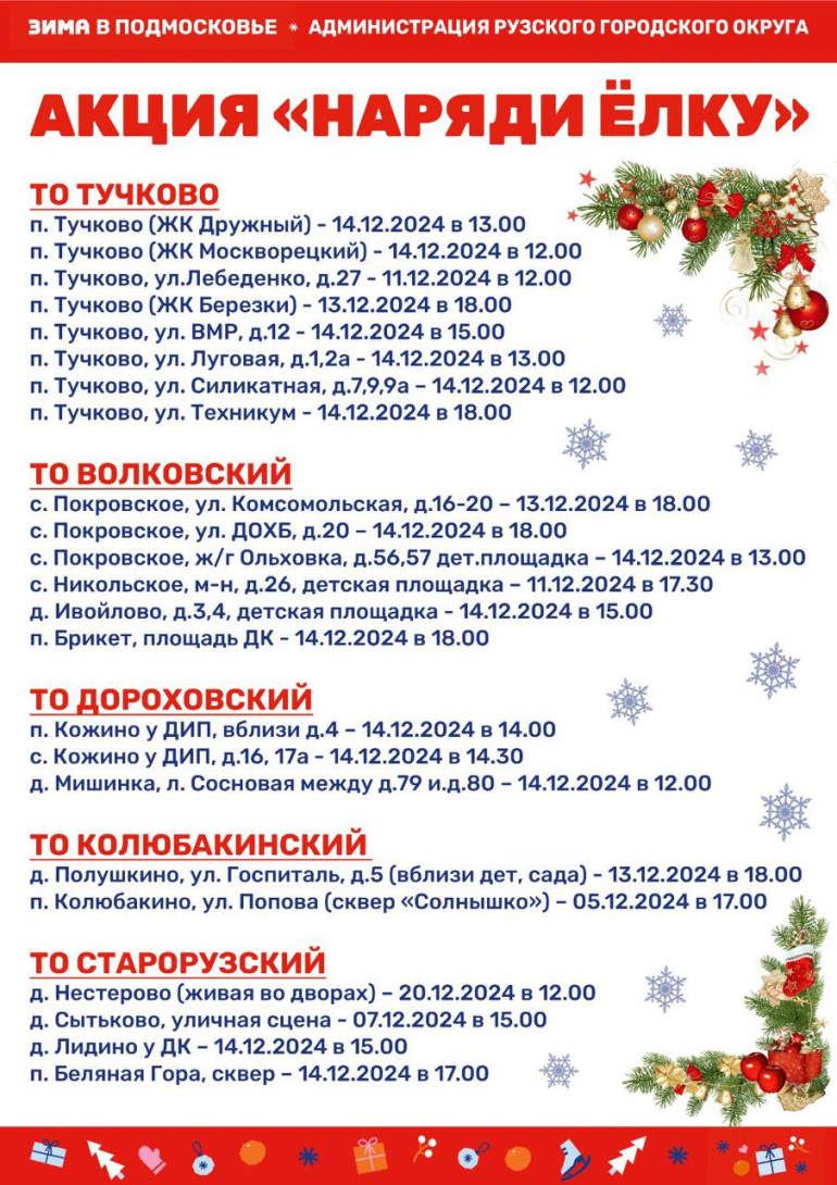 Жители смогут не только украсить ёлочки блестящими шарами, но и поучаствовать в увлекательных играх и поводить хороводы. Сделать это можно по следующим адресам: