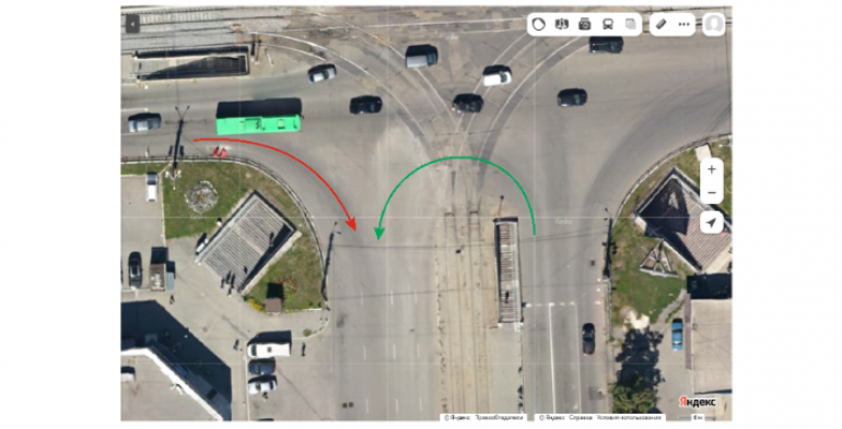 Вернёмся к началу статьи и рассмотрим пример движения по такому перекрёстку: