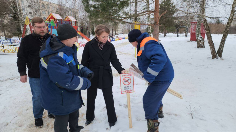 Обращение с просьбой решить вопрос выгула собак поступило от местной жительницы, рассказала Тамара Пирогова. Дело в том, что хозяева зачастую не заботятся об уборке продуктов жизнедеятельности своих питомцев с общественного пространства. И в рамках обхода территории было принято решение установить таблички. Предупреждающие знаки теперь встречают отдыхающих у входа в сквер «Солнышко».