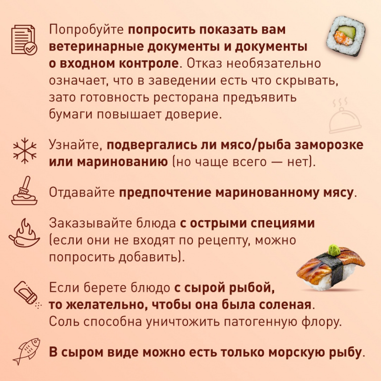 Как не отравиться роллами, тартаром и стейком слабой прожарки, научили в Роскачестве