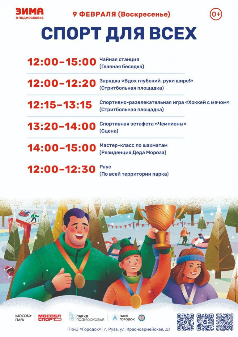 В эти выходные, 8 и 9 февраля, в рузском парке «Городок» пройдут спортивные мероприятия, в которых могут поучаствовать все желающие. С подробной программой можно ознакомиться в нашем материале.