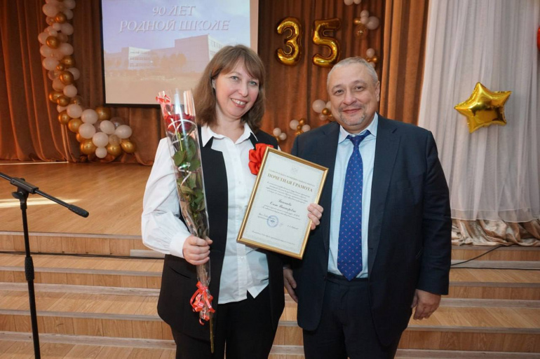 — Конечно же, в первую очередь хочу выразить особые слова признательности всему педагогическому составу и лично директору Татьяне Алексеевне Щербаковой, — добавил Александр Горбылёв. — Это высокопрофессиональный коллектив, творческий, активный, всегда открытый к поиску. Спасибо вам за вашу дружную и трудолюбивую команду единомышленников, за целеустремленность, энтузиазм и самоотдачу! Примите самые искренние пожелания крепкого здоровья, успехов, благополучия, оптимизма, процветания и новых достижений! А ученикам желаю любить свою школу, уважать традиции и гордиться успехами! С юбилеем!