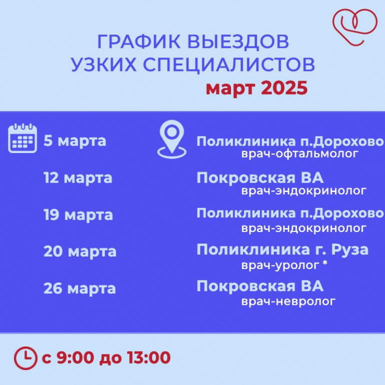 Рузская больница опубликовала мартовский график выездов узких специалистов