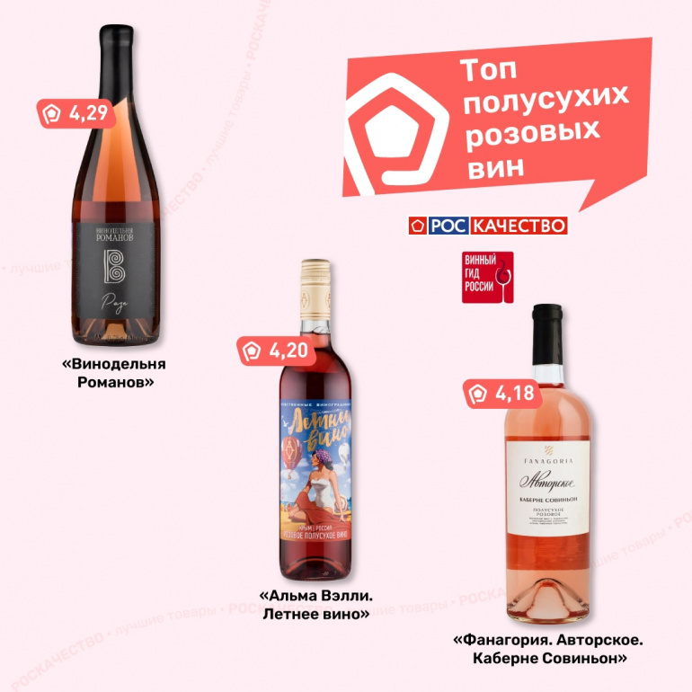 Специалисты «Винного гида России» проанализировали 67 наименований розового вина от 51 торговой марки. В преддверии Международного женского дня они отобрали по три лучших сухих и полусухих вина, а также одно полусладкое.