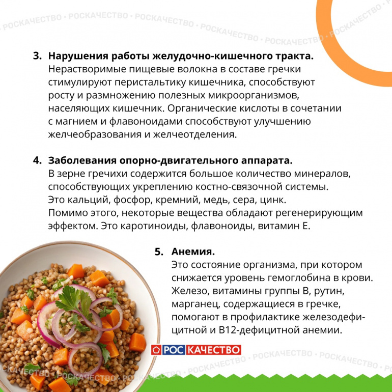 Помимо общеукрепляющего эффекта, гречка играет важную роль в профилактике различных заболеваний. Её регулярное употребление снижает риск развития сердечно-сосудистых патологий, диабета, ожирения, анемии и заболеваний желудочно-кишечного тракта. Антиоксиданты, входящие в состав гречки, могут замедлять процессы старения и препятствовать появлению онкологических заболеваний.