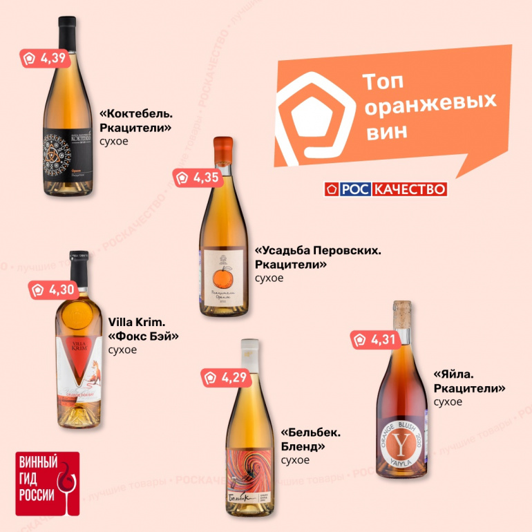Наиболее популярным сортом винограда для производства оранжевых вин остаётся ркацители, из него изготовлены и лидеры рейтинга. Также востребован селекционный сорт цитронный магарача. Кроме того, виноделы активно экспериментируют с различными белыми сортами винограда, создавая новые вкусовые сочетания.