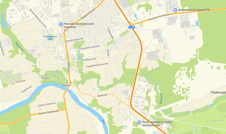 Согласно данным сервиса 2gis, в Рузском округе есть три места, где примут шины на утилизацию. Скрин: 2gis.ru