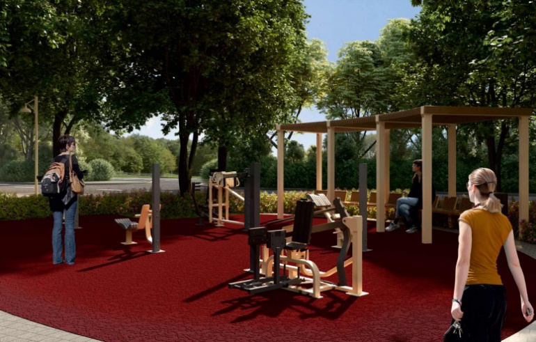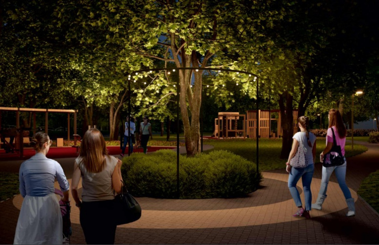 В сквере установят теневой навес с качелями, перголу, игровой и канатный комплексы, качалки на пружинке и карусели «Барабан», а также скамейки. Ещё будет оборудована спортивная зона, где появятся уличные тренажёры и теннисные столы. Освещать сквер будут фонари, светильники и опоры с гирляндами.